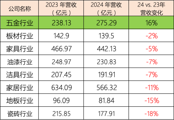 细分市场都面临着同质化严重、需求疲软、量价齐跌的困境;但是五金仍然通过国产替代,实现了行业营收和利润的双增幅。而在油漆行业,细分行业虽然下滑,但是多乐士却是增长13%。